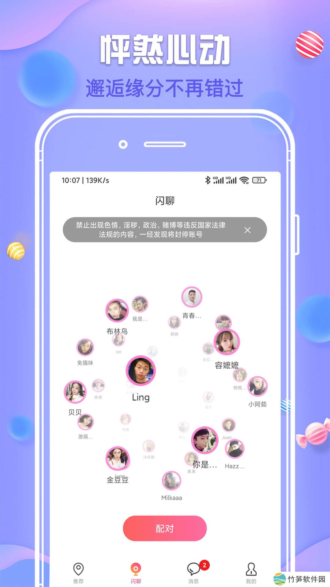 2、软件可以为你智能的匹配附近的异性用户,让你在这里用户可以随时找到自己喜欢的对象。