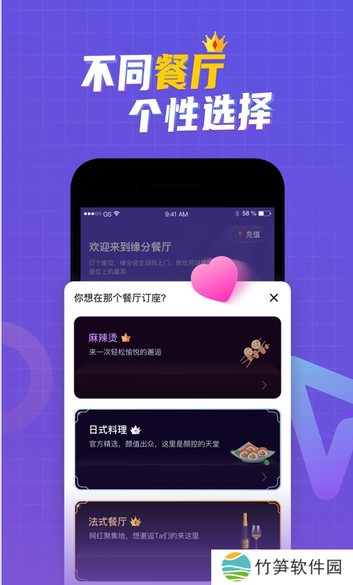 多种餐厅:满足你对相亲对象的不同要求,可以选择在“麻辣烫”、“日式餐厅”、“法式餐厅”不同的地方选择座位;