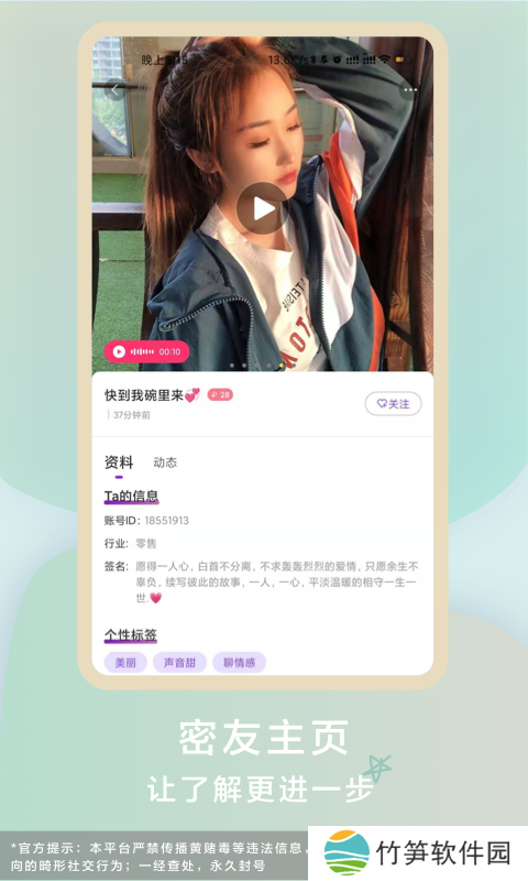 轻声app优势【实名认证】真实用户,真实照片,身份核查,实名认证,让你的交友更放心,约会更安心;