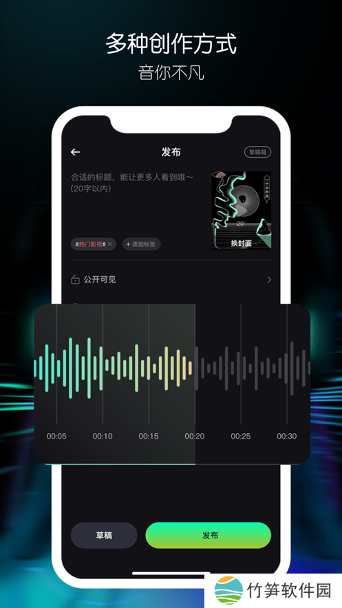 一键上传声音,还有多功能进行声音美容,让你的声音轻松记录在civicivi,随时随地向甲方展示你的声音成果