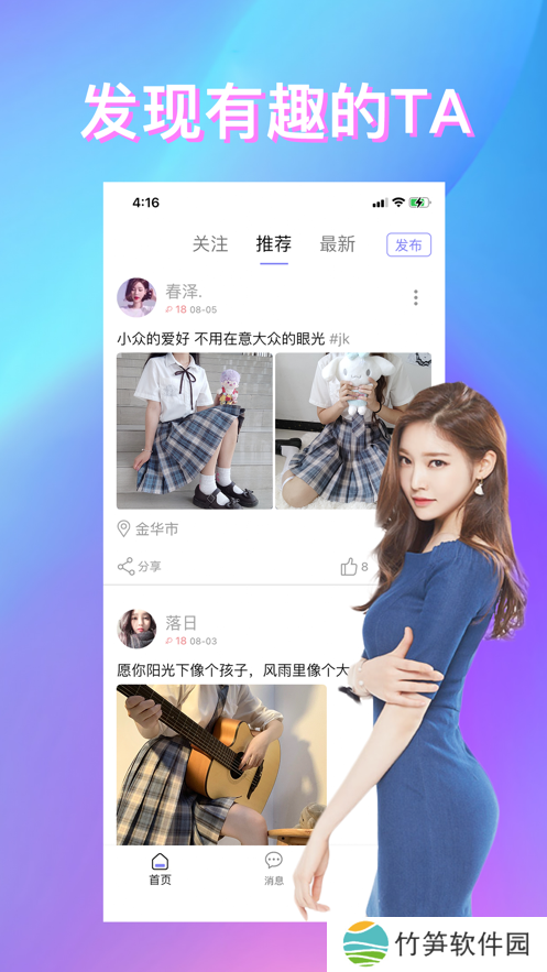 附近广场,快速找到附近的人的动态,遇见兴趣相投的TA