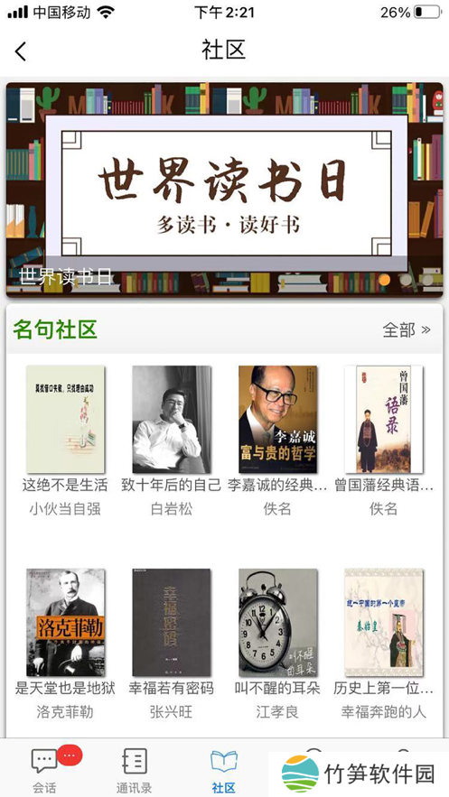 2.社区页面内,海量精选读物,随时阅读,阅后感言,随心畅聊;