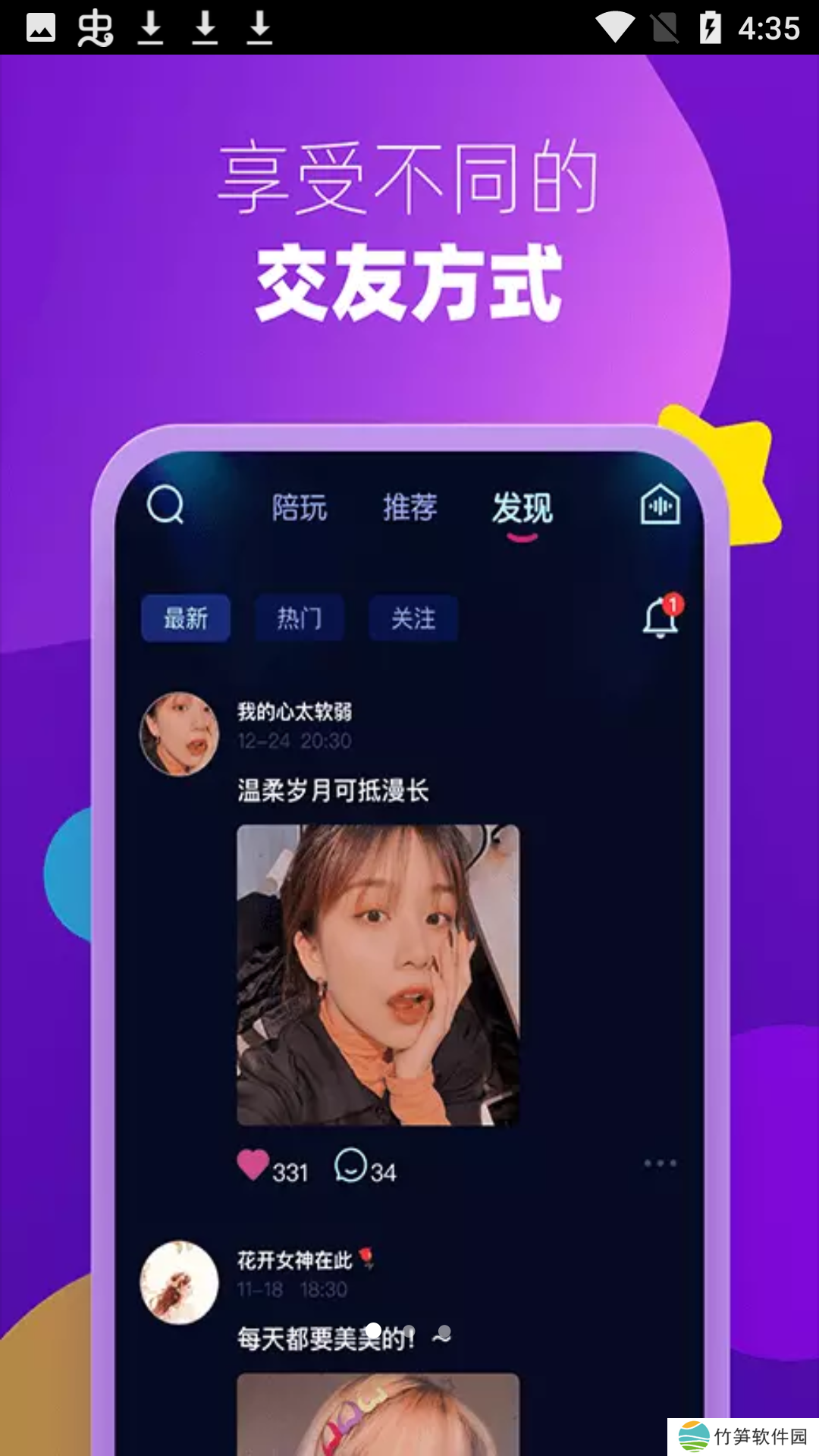 Miki软件特色1、最好的聊天模式推荐给你,动态广场信息推荐的还是挺全面;