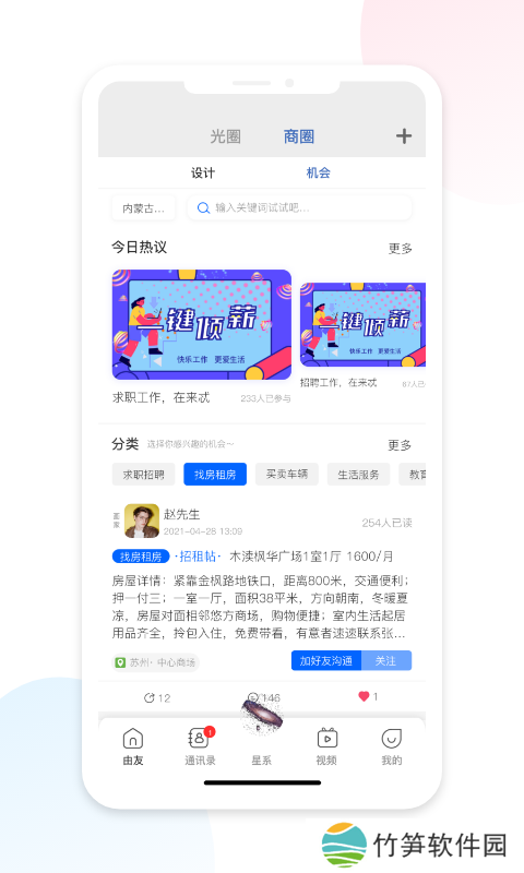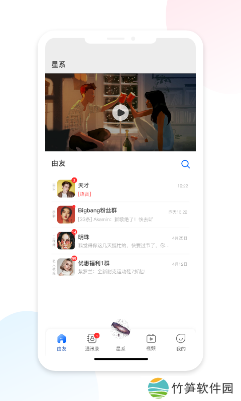 由友app是一款2021最新上线的手机社交交友软件,此软件可以自动同步你的通讯录,添加好友一键搞定。还可以加入到自己感兴趣的群组中,发布动态分享生活点滴,甚至线上还有超多有趣的小视频等你刷取,你还在等什么呢,赶紧来007游戏网下载体验吧。