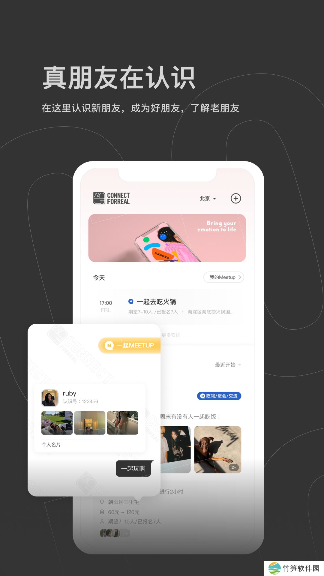 不想把时间浪费在网上无意义的浅层人际关系建设上,理解一个人的热情总是足以支撑最初的几句问候。要了解应用程序,从线下会议开始,结识新朋友,交好朋友,认识老朋友,建立真正的社交关系。