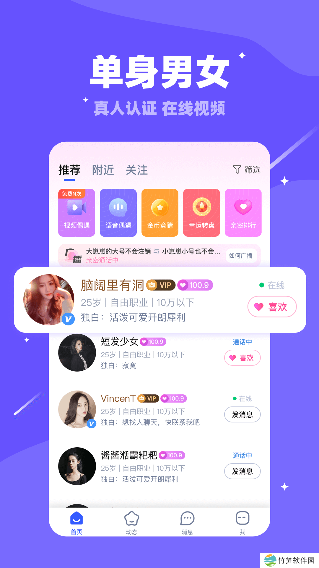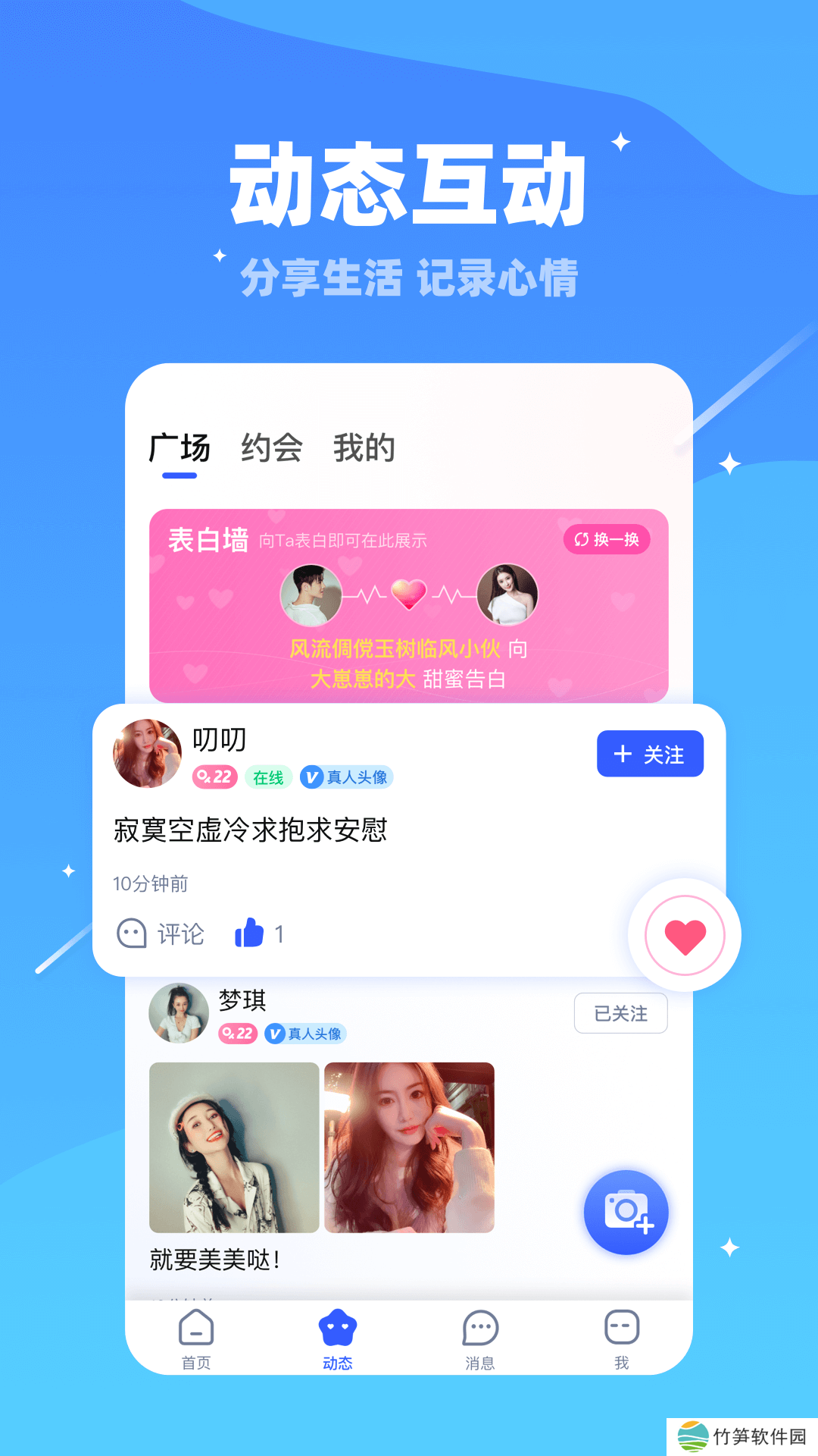3、约会相亲减少距离感,开启一场陌生人与陌生人间的美好邂逅,通过实时语音畅聊互动使双方感情迅速升温,打造多场景真实在线约会相亲社交产品。