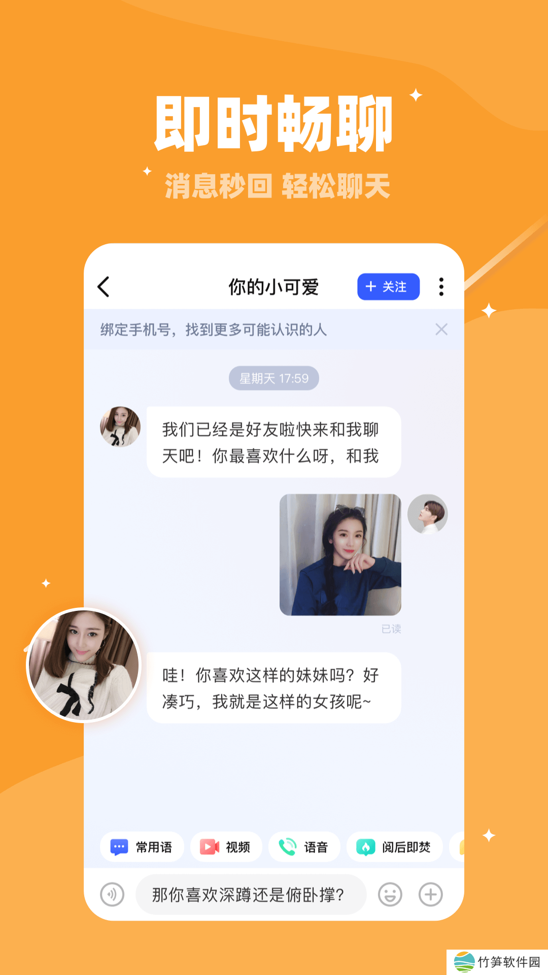 2、你可以卸下面具、放下包袱,展显最真实的自己,语音视频交友一对一互动,分享生活的趣事;
