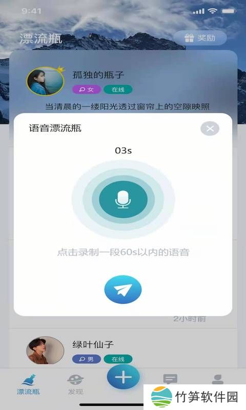 让人特别喜欢的社交互动类语音软件,全程都是多元化的交友互动方式,为你们快速找到你喜欢的声音,让自己利用不同的交友特色,轻松感受漂流瓶交友乐趣。