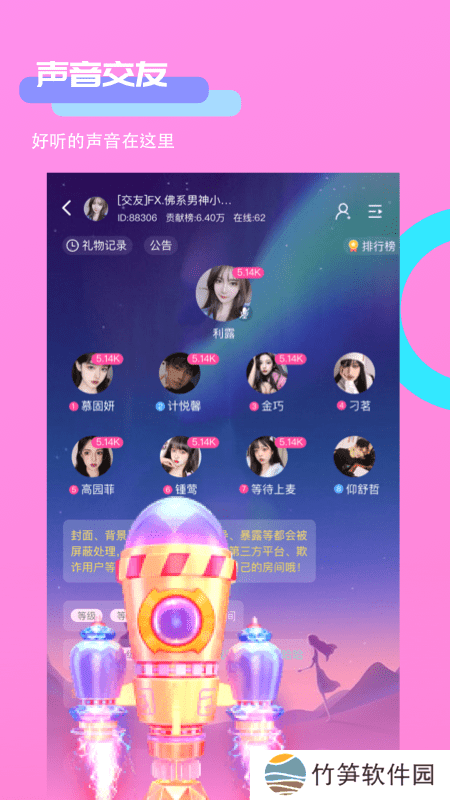 声控app:一款最新推出的手机社交软件,我们此款声控app上面有着非常不错的高品质用户和多重的手机社交功能,不管你是在线的搜寻话题语音房间还是在线的找对象脱单,我们都能满足你的需求,并且我们平台上的所有的用户都是经过专业的审核的,可以在线让你感受优质的手机购物体验,喜欢的点击下载。