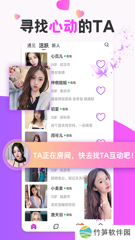 这里能遇到专属于你自己的小甜心,视频交友,适用所有年龄真诚交友APP,是一个陌生人交友约会社区。也是一个恋爱、视频聊天、见面、视频交友为一体的交友约会平台。