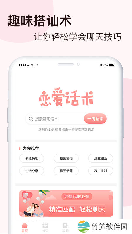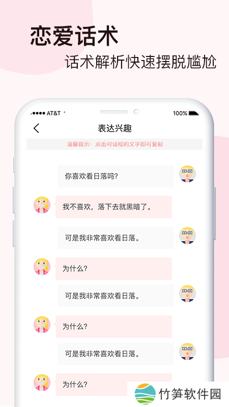 1、非常优质的恋爱话术软件,功能非常强大,这里提供海量的恋爱技巧,各种聊天攻略;
