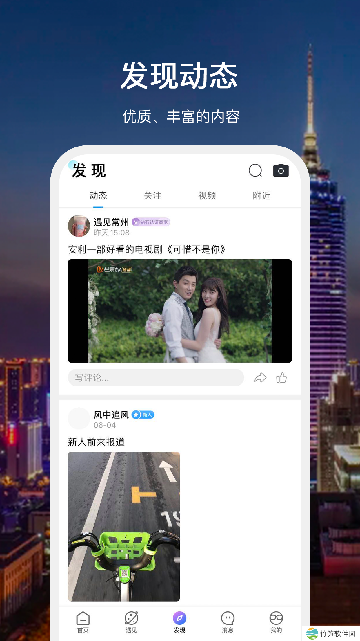 遇见常州app功能1、在这个平台里面大家随时都可以来交流各种生活趣事,还可以跟周边的陌生人聊聊天;