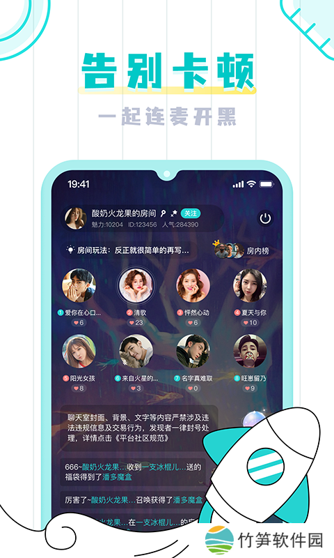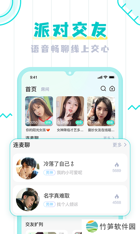 年轻一代的语音社交乐园;聚会交友,语音聊天,网心;个性展示,全方位展现你的精彩;酷酷的装扮,给TA的心;告别卡顿,我们去告白。