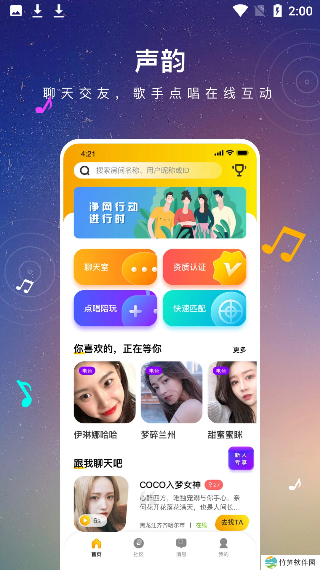 声韵app特色[扩展列表交朋友]玩语音,聊天交友,结识更多有趣的灵魂,让社交交流更轻松、更高效