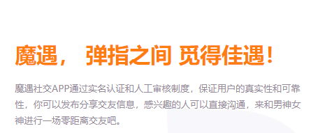 魔遇怎么样,魔遇官网,魔遇app是一款值得年轻人来尝试的手机社交交友软件,在这里你更容易遇到对的人,然后开启一段约会之旅,所有用户需要注册经过人工认证之后才能在平台上和他人互动,没有复杂的套路,单纯的聊天环境,你还在等什么呢。