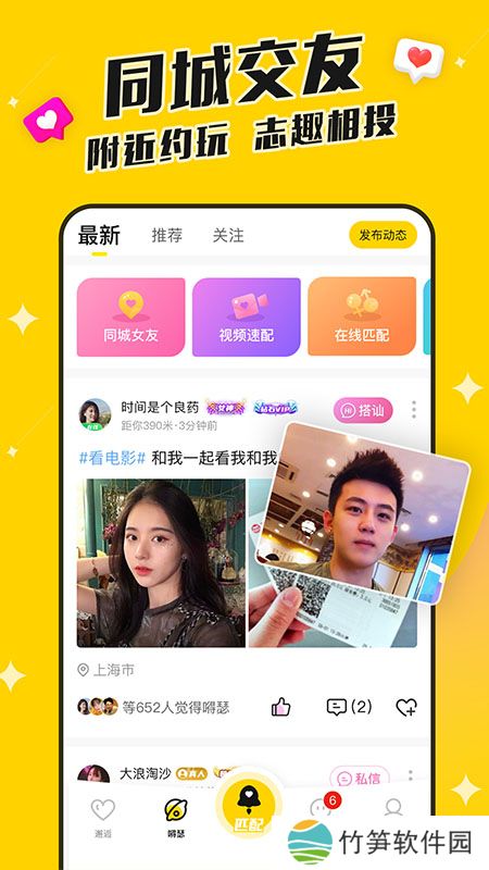 3、动态:分享个人动态,实现同城约会约见,了解附近心仪对象。
