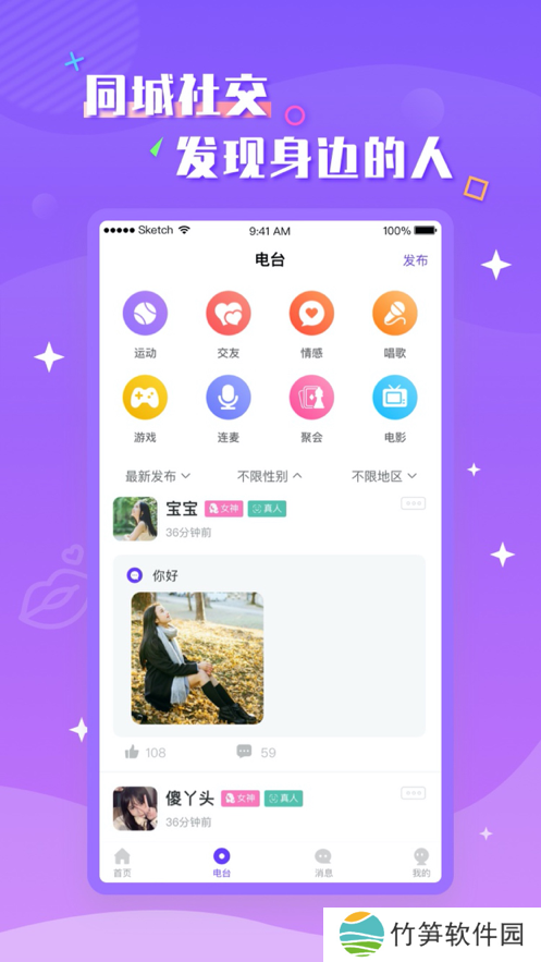 面纱公园app功能1、[即时互动] 实时互动聊天,连麦畅聊,与达人速交好友;