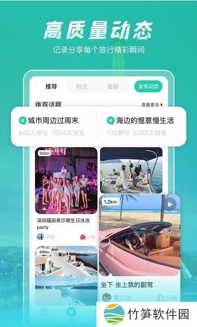 2.专注旅行内容,跟爱玩的Ta一起体验特色游玩.住宿等项目,随时随地与旅伴一起探讨分享吃喝玩乐攻略;