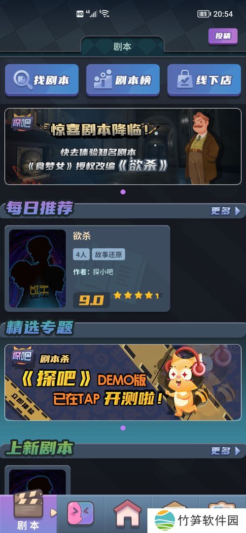 这是一个剧本杀爱好者必备平台。它有各种各样的剧本主题。用户可以在这里玩剧本杀戮,有精彩的视频播放方法。它还可以找到剧本和离线商店,以满足您的剧本杀的需要。