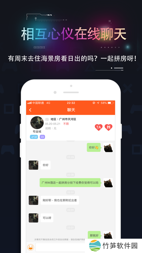 趣伴拼房app亮点人人社交:随时随地,一键轻松开启新的聊天场景,零距离交友;