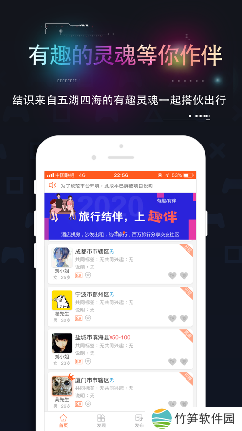 趣伴上的女的是真的吗,趣伴拼房app其实就是趣伴软件哦,这是专门为出差旅行在外的小伙伴们打造的,此软件可以帮你在外地一键拼房成功,可以和来自五花四海的小伙伴们一起享受旅途之旅,甚至可以和异性拼房成功哦,和ta一起看日出,赶紧来yx007游戏网下载吧。