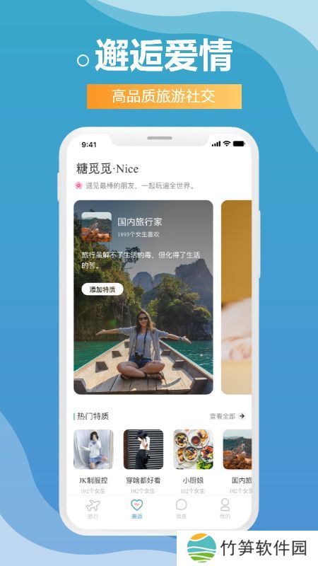 3、找到最棒的人一起玩遍全世界,高品质旅游社交,连接甜蜜约会。