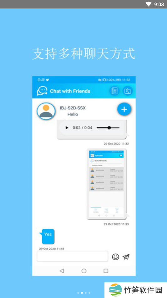3、聊天支持文字、表情、图片、语音、视频等各类信息的发送,让您想发就发。
