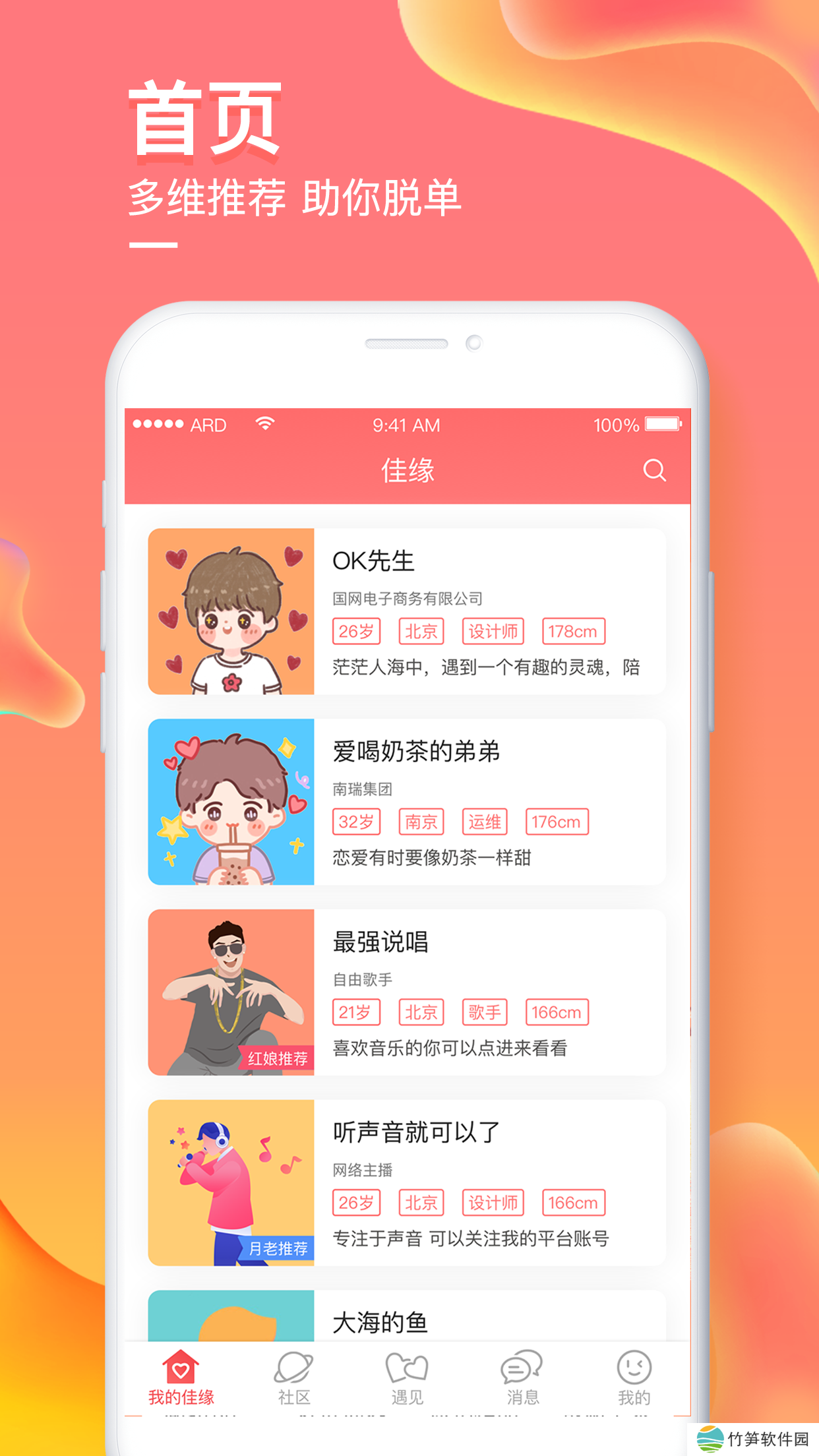 一款专为单身男女量身打造的交友恋爱软件,你能够在这里找到那个适合你的人,超多年轻单身男女都在这里,从打招呼到聊天,只需要你的主动,超多有趣在线小游戏,轻松破冰,享受社交的魅力,杜绝尴尬,氛围非常舒服。平台经过严格验证,所有的用户都是真实的,不存在任何的机器人,不会泄露用户的任何隐私和个人信息!