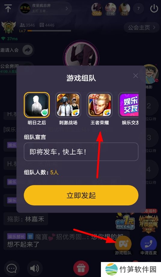 2、支持多人在线连麦开黑,吃鸡队伍实时在线进行交流,让您吃鸡概率大大提升,同时还可以进行连麦直播,让彼此的交流让更多人听到。
