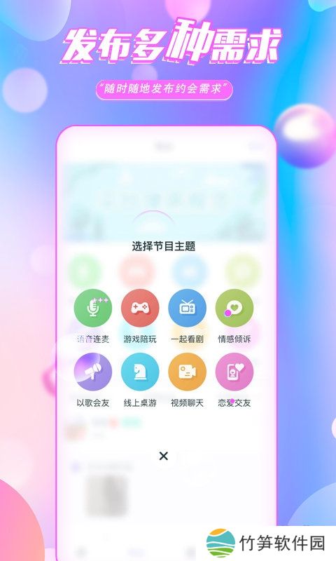 3、平台有很多不同的主题可以让你选择,不管你是想要找陪玩、聊天还是倾诉对象,都可以满足你。
