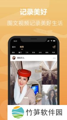 2、记录美好,优质空姐动态,原创图文与视频,记录美好生活。