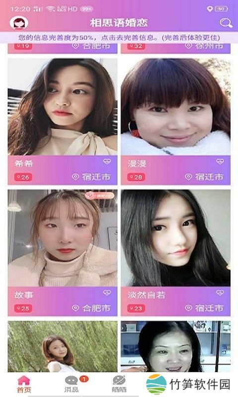 {首页}:相亲男女头像照片、基础信息展示,智能匹配。