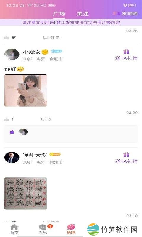 {晒晒}:晒心情、晒生活、晒工作;时刻更新动态引领TA的关注