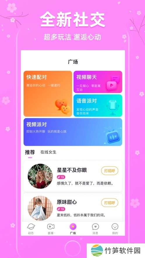 樱花交友软件安卓免费版,是一款拥有大量优质单身用户的社交软件,软件内拥有各种趣味好玩的社交玩法,用户能在线结交来自五湖四海的朋友,在扩大朋友圈的同时,说不定还能遇到一个意外收获哦。