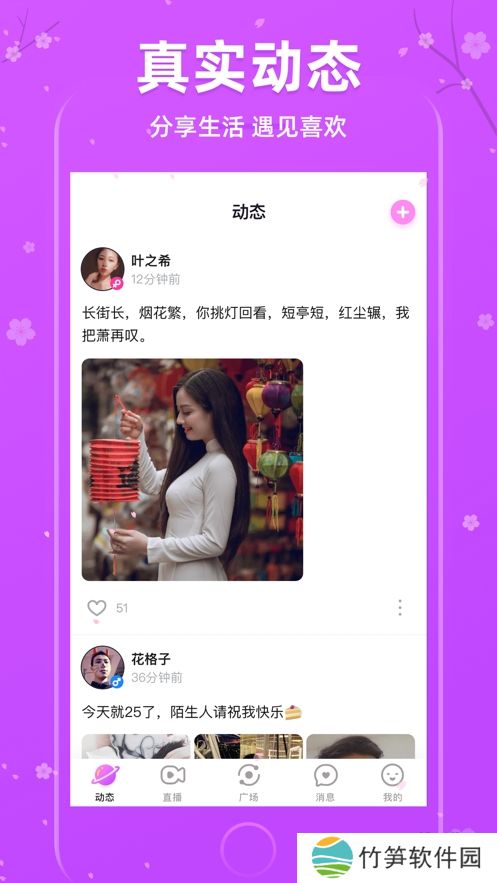3、动态广场:分享自己的生活瞬间,认识有趣的我。