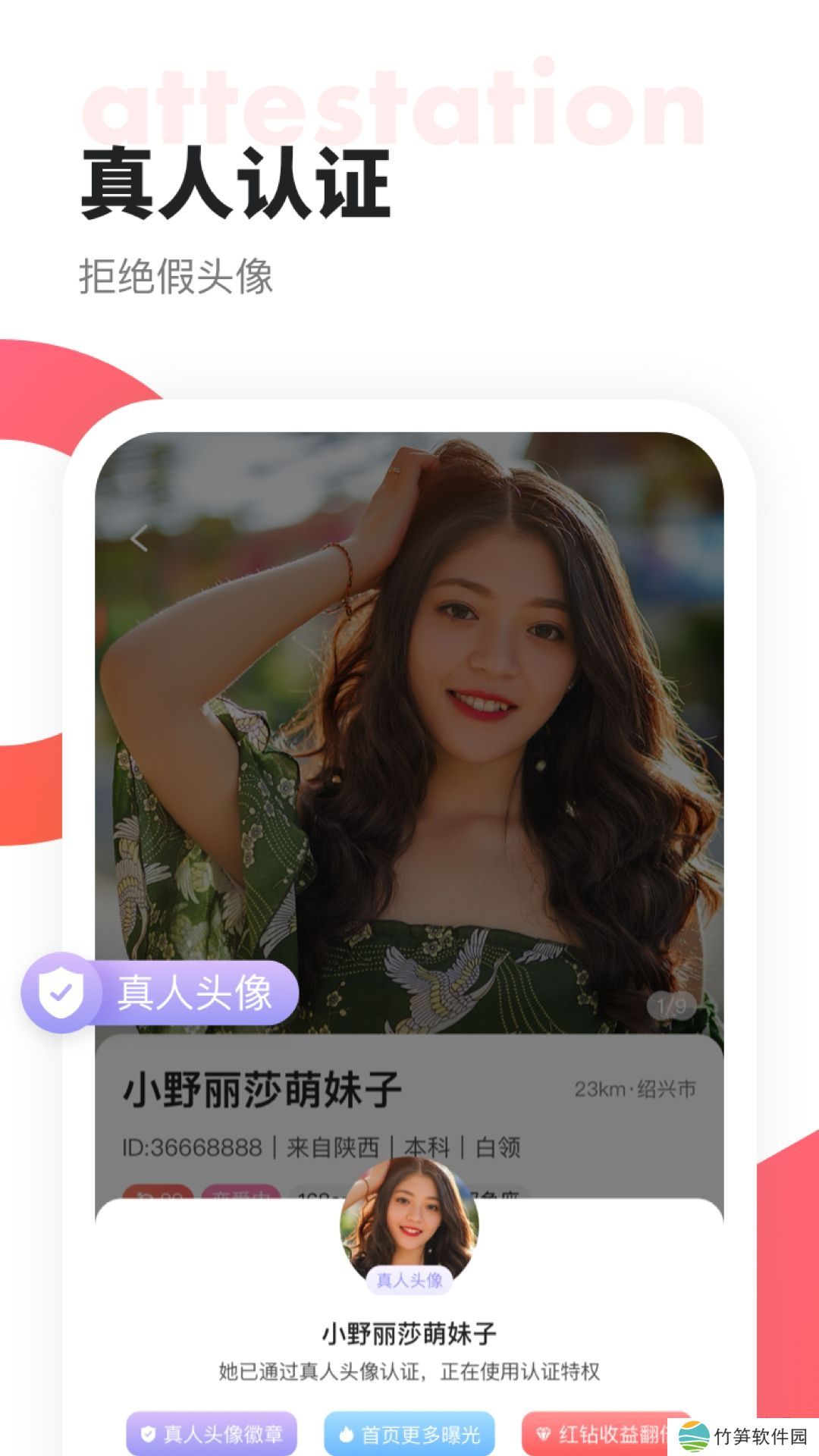 2. 90%的聊天用户已通过真实人认证,严格的机器+真实人头像的人工审核;