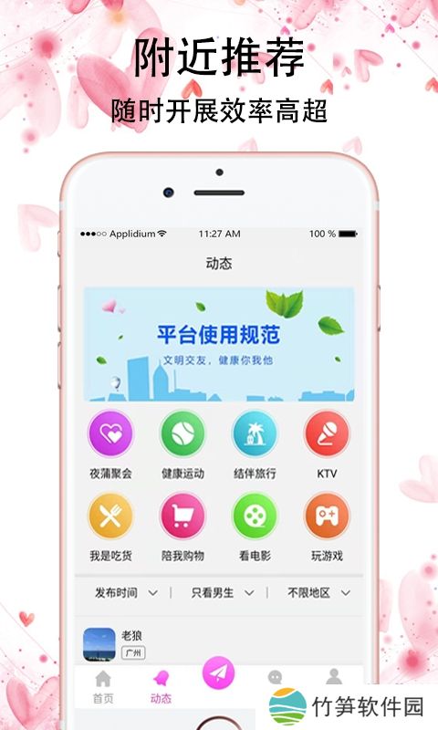 发布看电影、吃吃喝喝、玩游戏、运动、旅游等节目,清晰直接高效。