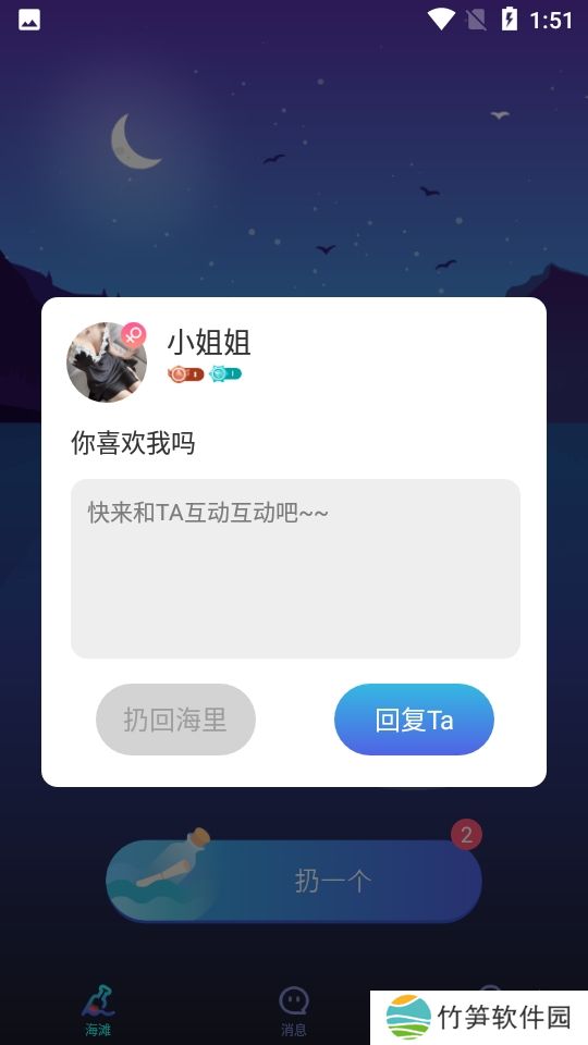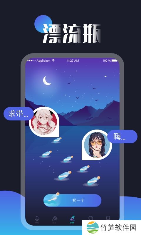 这是一款漂流瓶玩法的交友软件,给你超多邂逅异性的机会,只要拿到漂流瓶那都是一段奇妙的缘分,快来下载试试吧!
