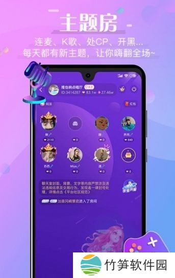 【主题房】:连麦、K歌、处CP、开黑、吃鸡、pia戏、小游戏,每天都有新主题,让你嗨翻全场~