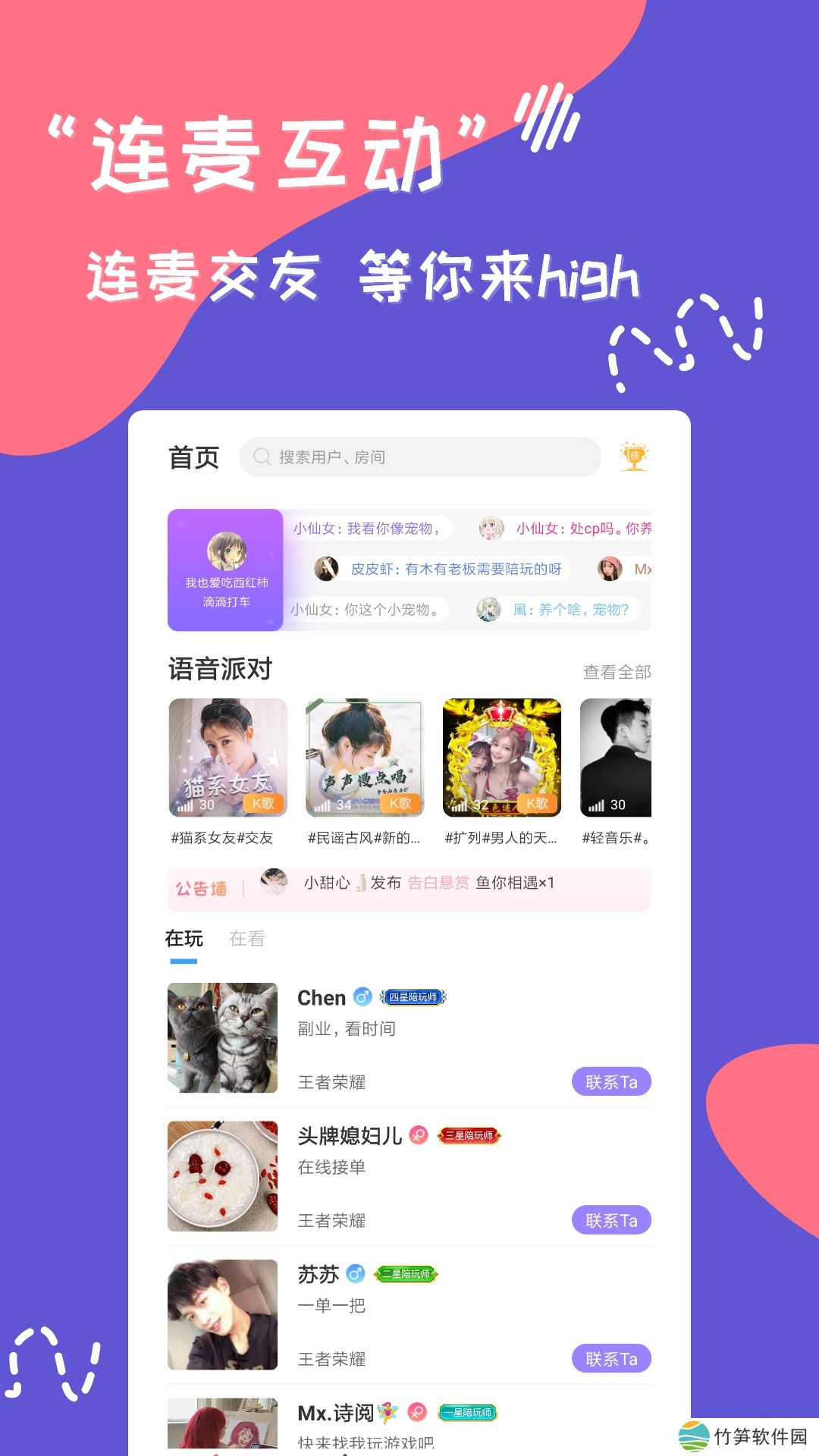 连麦寻欢语音聊天版亮点还在玩没有温度的文字聊天?让我们来连麦聊天吧!即时聊天,在线交友,告别“尬聊”,一起让约会美好!