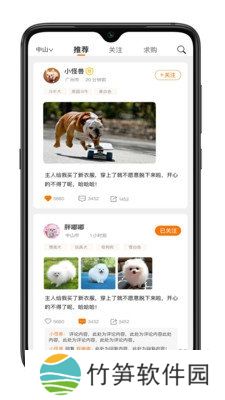 1、每天都有精选内容推上首页,近距离接触优质狗民,一键关注成为好友,相互交流养宠经验;