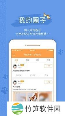 2、我的圈子:宠友们可以建立自己的私人萌宠圈和邀请更多的宠友进入圈子,做养宠交流及同城活动组织。