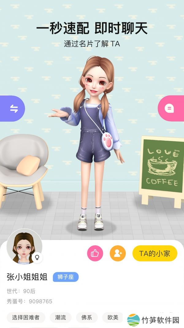 3.你可以通过“速配”匹配认识不同的有趣的人,你们可以文字聊天,也可以用你们的虚拟形象视频聊天。AI系统会记住并学习你的喜好,只为给你匹配灵魂相近的人。