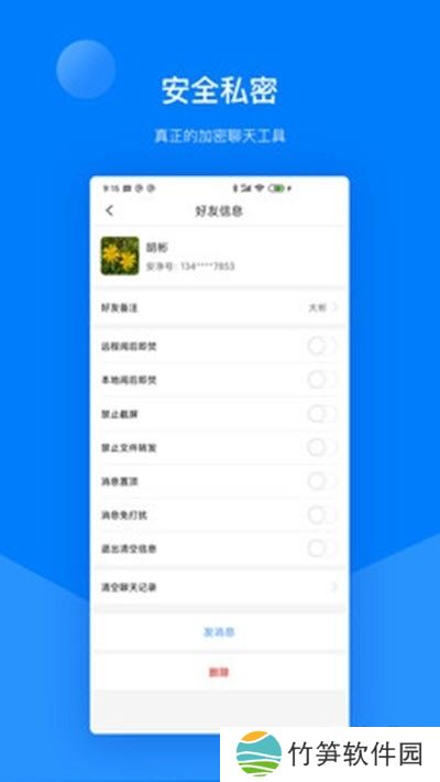 1、当前最先进的加密算法,对发送的信息进行端到端加密,避免第三方截获和解密聊天内容,有效保护即时通讯的隐私。