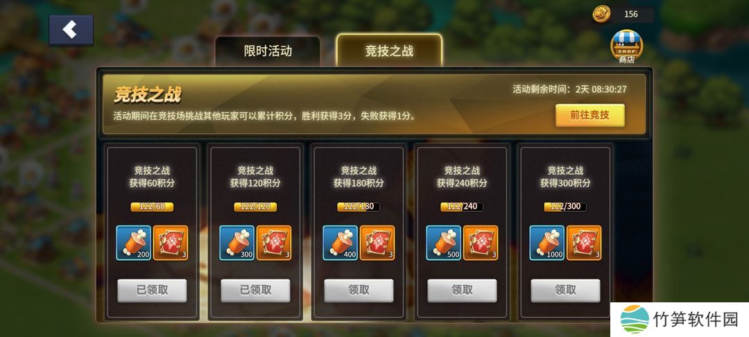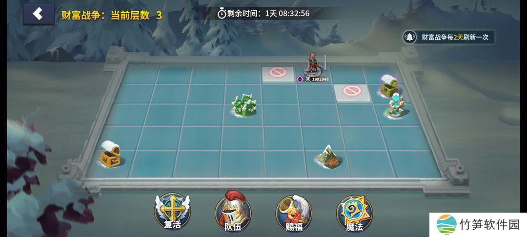 9、财富战争3天一次,不要第一天打完,第一天打到第三层,把第三层boos打了,留一个怪第二天过每日任务,多十个宝箱。竞技场不要去挣排名没啥意义,竞技卷留着,也有竞技活动,每天可以买一个必买,竞技场每天随便打一次过任务就够了。