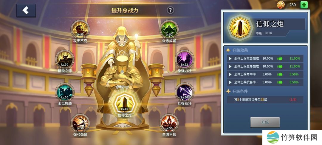 2、然后就是升级城堡,边升级城堡边用抽到的卡推图,拿推图资源抽卡,以战养战。城堡和学院升级不要用加速器,加速器后面有加速器活动,前期就三个建筑重点升级,城堡,商会,学院。别的建筑不需要,除非是升级这三个建筑的前置条件升一下。