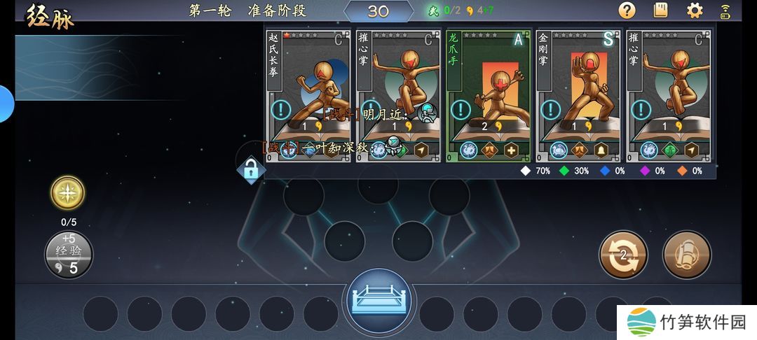 @经脉等级上去,旁边牌堆刷不同品质卡牌(白绿蓝紫金)的概率也改变