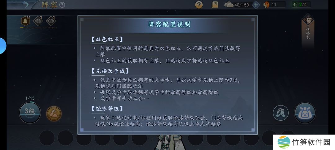 @右上角双色玉,过地图才能拿。左下角经脉等级切磋和打架能拿,升等级就能上场更多张卡。等级旁边是你选的属性,选对应卡牌的属性,使你的卡牌右上角品质尽可能高。