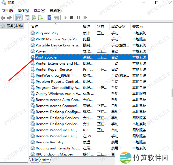 在Windows操作系统中,打印机服务可能没有正常启动,导致打印机处于脱机状态。按以下步骤检查: