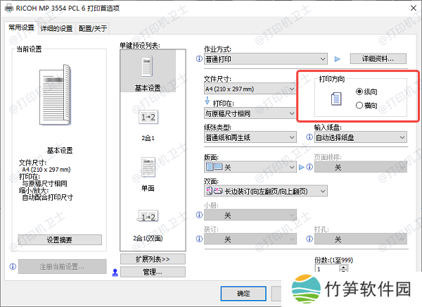 在打印设置中,检查“方向”是否与文档一致(纵向或横向)。